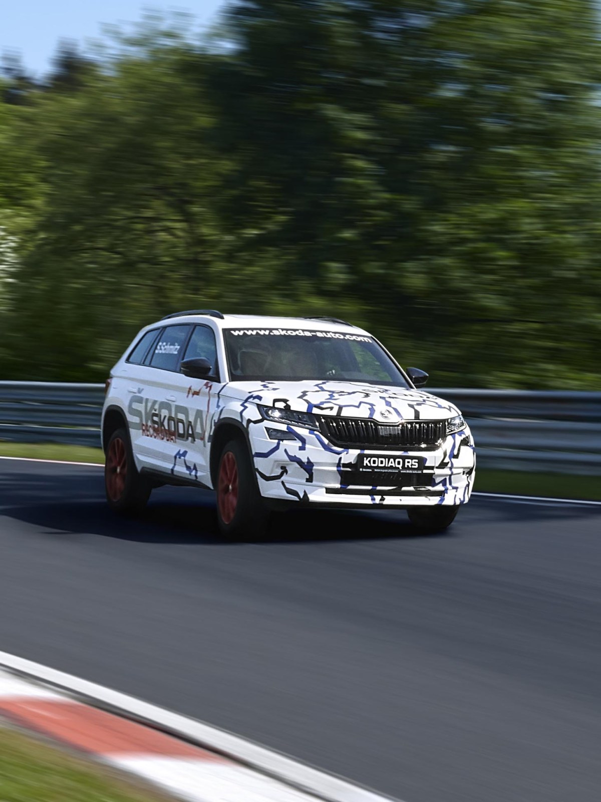 The Kodiaq RS comes with the new 2.0 BiTDI engine, producing 176 kW (239 PS). You notice, it’s almost in the league of the Lancia D24, with however undoubtedly much better torque and therefore pulling power throughout the rev range than the V6 Lancia. In the KODIAQ model range, the 2.0-litre BiTDI diesel engine is exclusively reserved for the RS, and thanks to Dynamic Sound Boost, the high-torque diesel engine’s power is immediately apparent. With adaptive Dynamic Chassis Control (DCC) including Driving Mode Select and progressive steering, the all-wheel-drive vehicle – which was still in its camouflage wrap during its appearance in the Eifel region – was of course perfectly equipped for its record-breaking lap at the Nordschleife.
