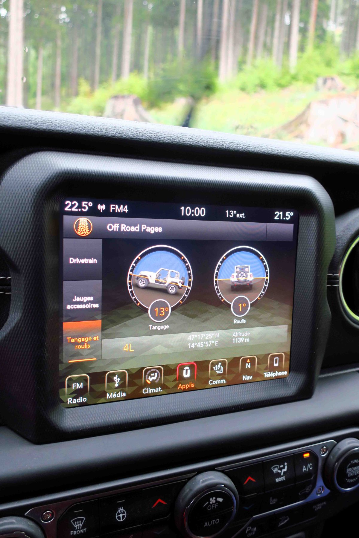 Standard on the Wrangler’s 8.4-inch UconnectTM are the Connected Navigation (TomTom Live) and Off-road Pages, which we mentioned earlier.