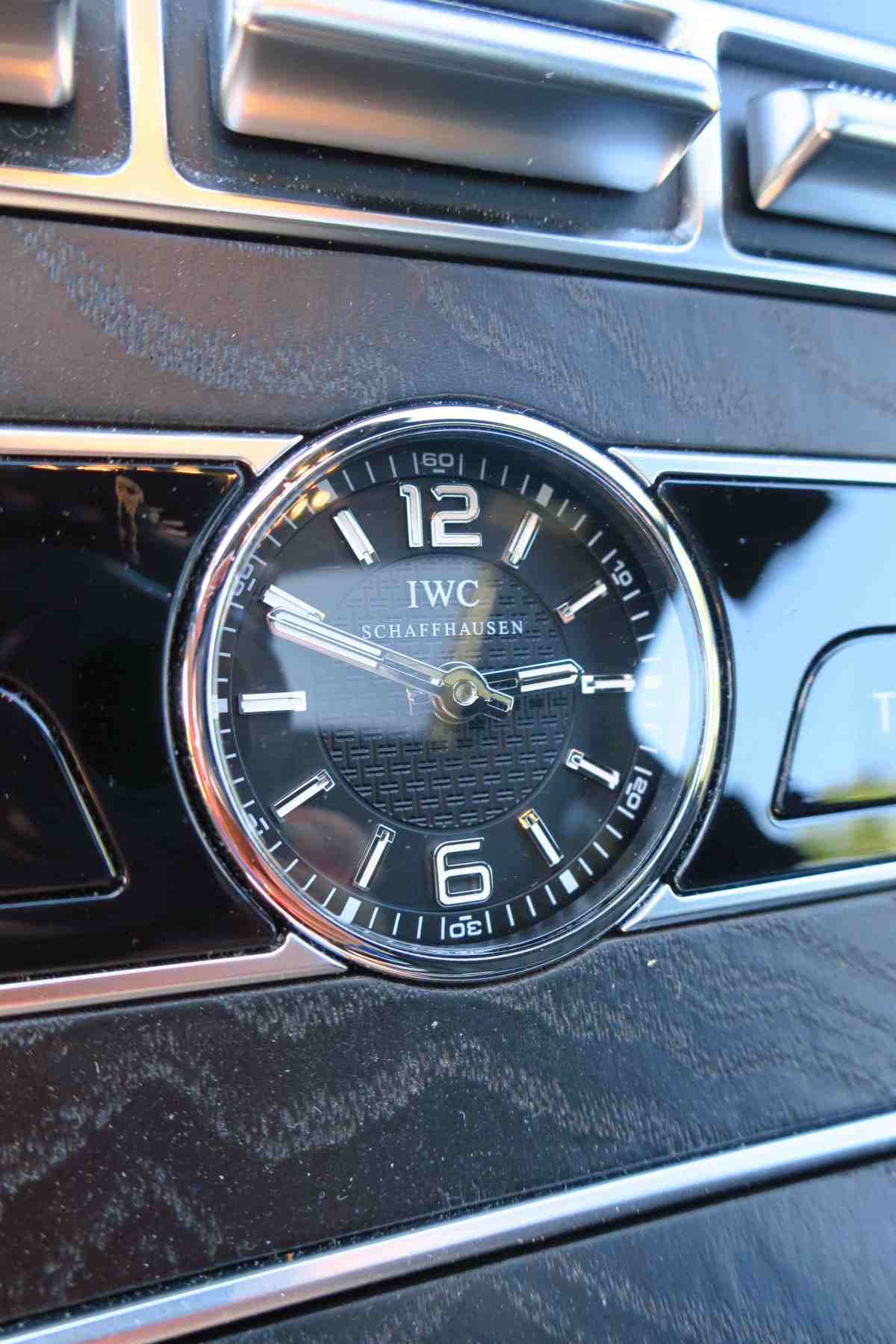 I always liked the clocks in a Mercedes, remembering the nice square Kienzle clock sitting in the middle of the dashboard on my father’s first Mercedes, a 1954 180 D Ponton, where I looked upon for hours during our long drives, sitting in the middle of the back seat as a 6 year old boy. Here we are spoilt with an IWC Schaffhausen analogue clock.