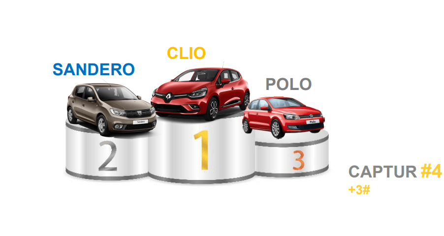 In the AB segment, the Renault Clio is the most popular, with the Dacia Sandero a good second. In the AB-SUV segment, the Renault Captur takes first place, with the Sandero Stepway being third. In the C-SUV segment, the Dacia Duster is a good second, with sales rising dramatically by not less than 60 pct.