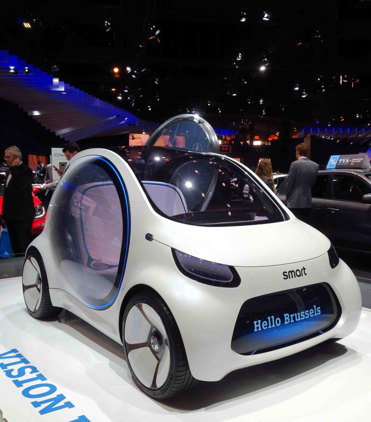 We will treat you in the coming days ans weeks to an extensive report on the Brussels Motor Show, with some notable (world) premieres like the Range Rover Evoque, for instance. We will also let you listen in with some interviews, notably of the designer of the Evoque, and also celebrate 60 years of Mini with further interesting encounters. Driving into the future autonomously on e-power is also very much in tht foreground, like this Smart Vision EQ fortwo you see here on the photo. It is designed with car sharing in mind, and takes its passengers whenever and wherever they want to go, and it doesn’t even have a steering wheel or any commands…