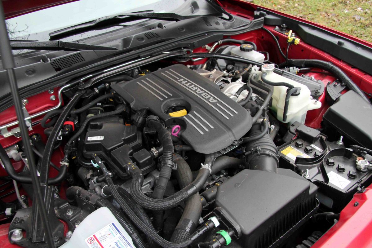 Pushing the starting knob and you are entering the Abarth world. As you know, Abarth started out as a manufacturer of “marmitti” or exhausts. Tifosi in those glorious fifties and sixties mounted them on their four cylinder Seicento’s, and as a result their Fiats sounded fit for a racing circuit. Revving it up, it truly sound like a thoughbred. Well, the engine of the Abarth 124 GT IS a unique unit.