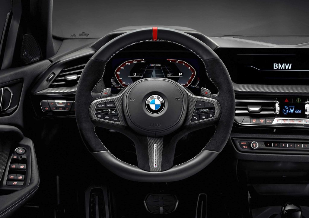 The Sport Line model with Black accents, window graphic in BMW Individual high gloss Shadow Line and sports seats, and the M Sport model with accents in Aluminium satinated, front apron with specially shaped air intakes and BMW M rear apron in High-gloss Black lead the 1 Series up the dynamic BMW Media Information 05/2019 Page 4 ladder culminating in the BMW M135i xDrive. The flagship model stands out with features including a mesh-design BMW kidney grille, angle-cut tailpipe tips in Cerium Grey and a BMW M rear spoiler in body colour.