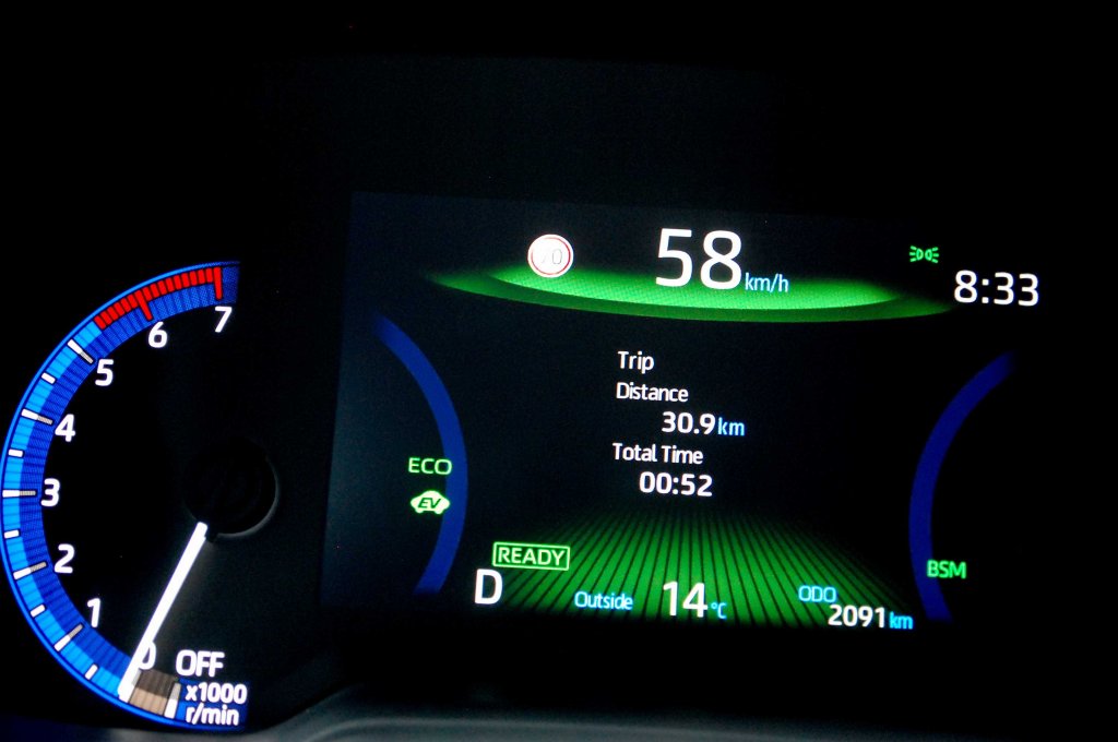Compared to the hybrid system of my Lexus, the latest generation hybrid system found in this Corolla tends to use the electric motor up to higher constant speeds, such as 75 km/h or thereabouts. Of course, when the traffic situation requires you to use more power, the system will – depending of the chosen driving mode – use the engine more or less instantly.