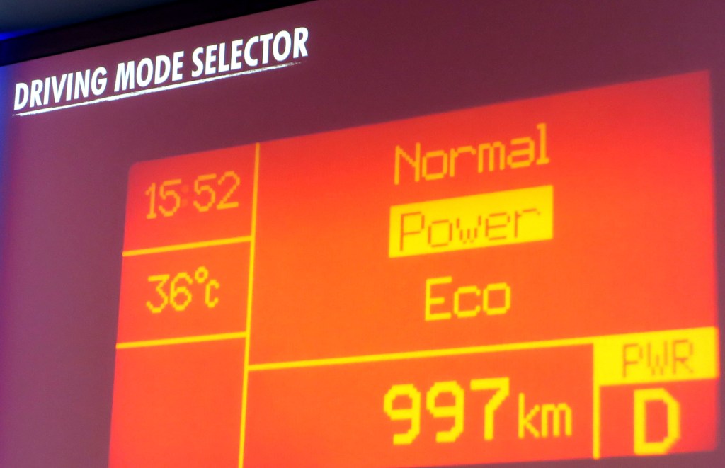 The new transmission lets you choose between three driving modes, eco, normal and sport, and there are two operating modes, “D” and the so-called “Autostick” mode. The latter is activated by shifting the gear lever to the left, and then you have simply to put the lever backwards and forwards to change up or down. Ideal for tackling these steep hills under full load…