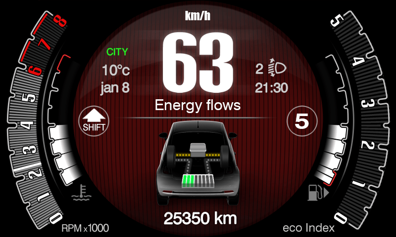 When driving gently through city streets and boulevards, with the engine being barely audible both to bystanders and occupants, the instrumentation tells you about the merits of coasting, and indeed, shifting the slick gearchange lever into neutral will stop the engine and let you coast gently along, doing exactly what all the environmentally conscious tell you to do: recuperate kinetic energy by gently rolling to a stop, adopting good anticipation and judicious driving.