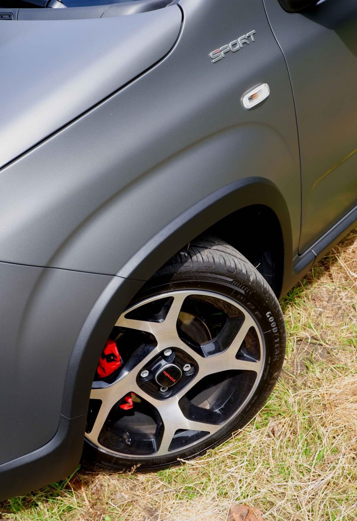 The most interesting part of this good looking Sport version of the in 2020 revamped Panda is its style and equipment. Our test car was sprayed in a very elegant matte grey, actually called unsurprisingly “Matte Grey.“ It is shod with elegant 16 inch “Sport” alloys with black and red accents.