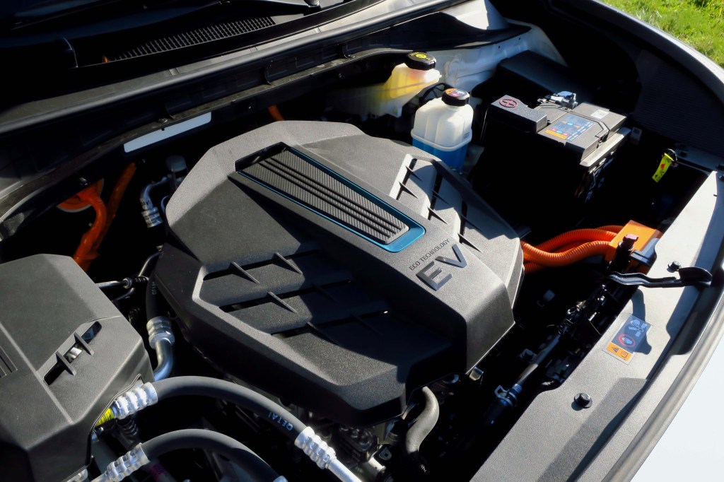 The display in front of you clearly indicates of course battery status and range, as well as the immediate or average consumption in KW/h. Soon one notices that this 150 kW or 204 HP Kia is quite frugal, where your driving style is of prime importance of course.