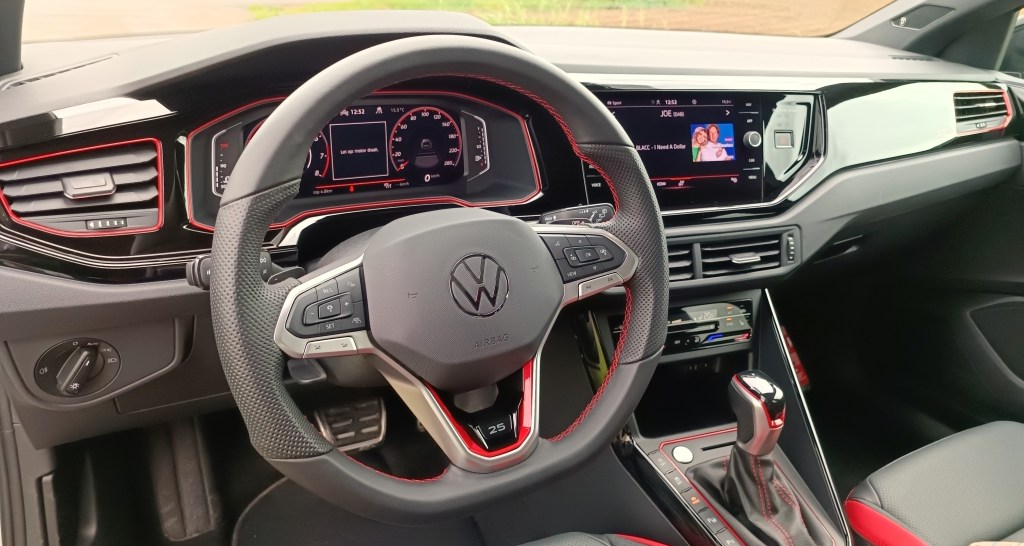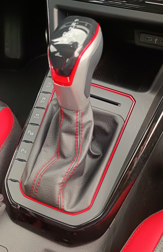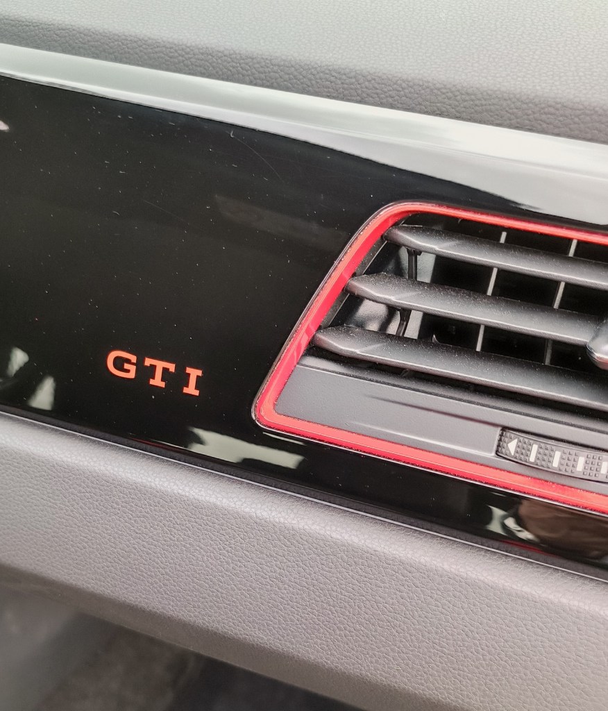 The GTI driver finds excellent seats with of course the GTI logo stitched in the upholstery, then the digital instrumentation of the Polo family, which has here large round clocks and is eminently readable and clear. The “haptic soft touch” controls on both arms of the steering wheel are gladfully replaced with true touch buttons, much to our delight. The sliding controls of heating and ventilation below the central touchscreen still need some concentration, and need more often than not a controlling eye, which can be distracting.