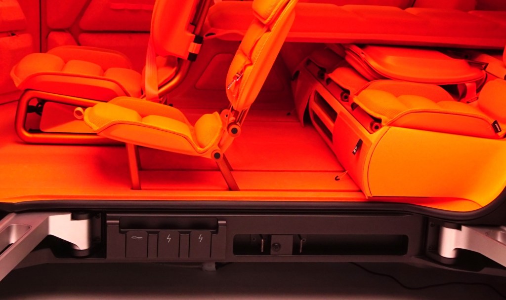 “Fold two seats under the rear seats and then you can rotate the driver’s seat 360 degrees, either for a good entry or when you want to work. Ideal for people who want to work – our first pillar – in another place than the office.”