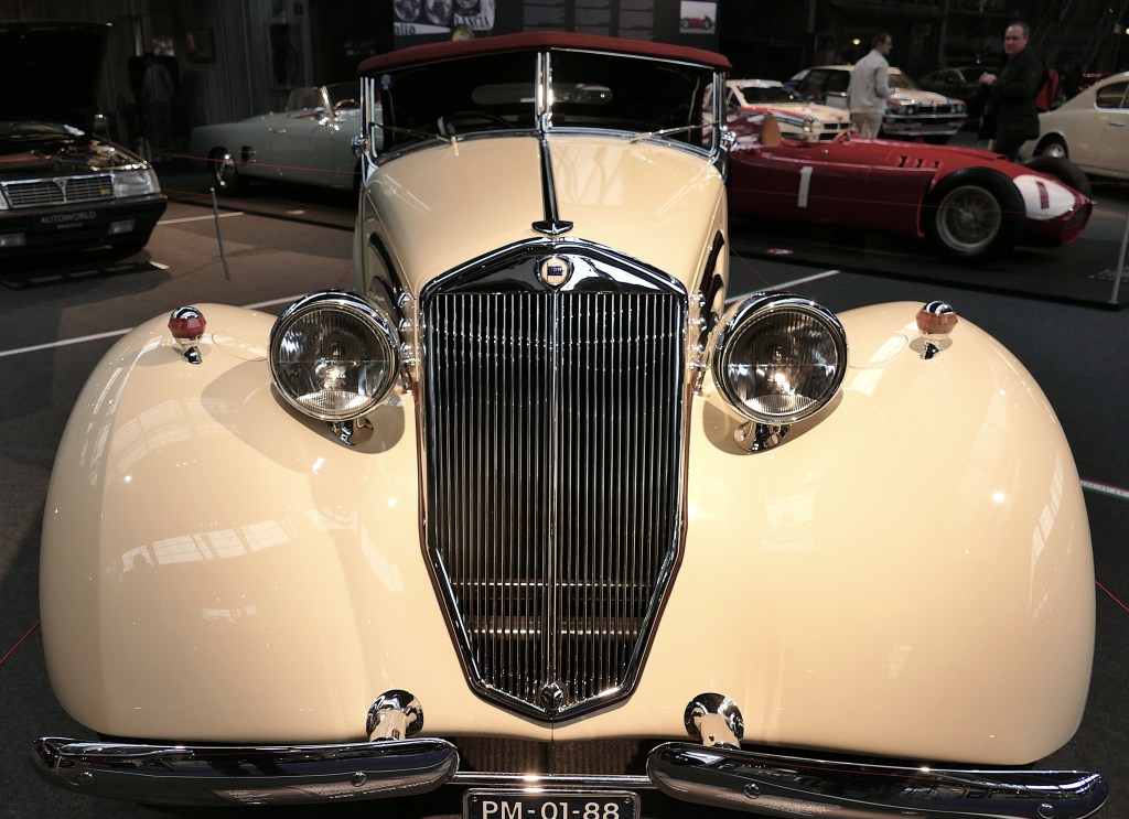 My eyes first fell on, at least to my taste, the absolute beauty of the show, the Lancia Astura Roadster by Pinin Farina. This 1935 Astura is a technical gem. The V8 engined car was introduced on the Paris Motor Show in 1931. This Astura on the show belongs to the third series, built between 1933 and 1937, with 1,243 units made.