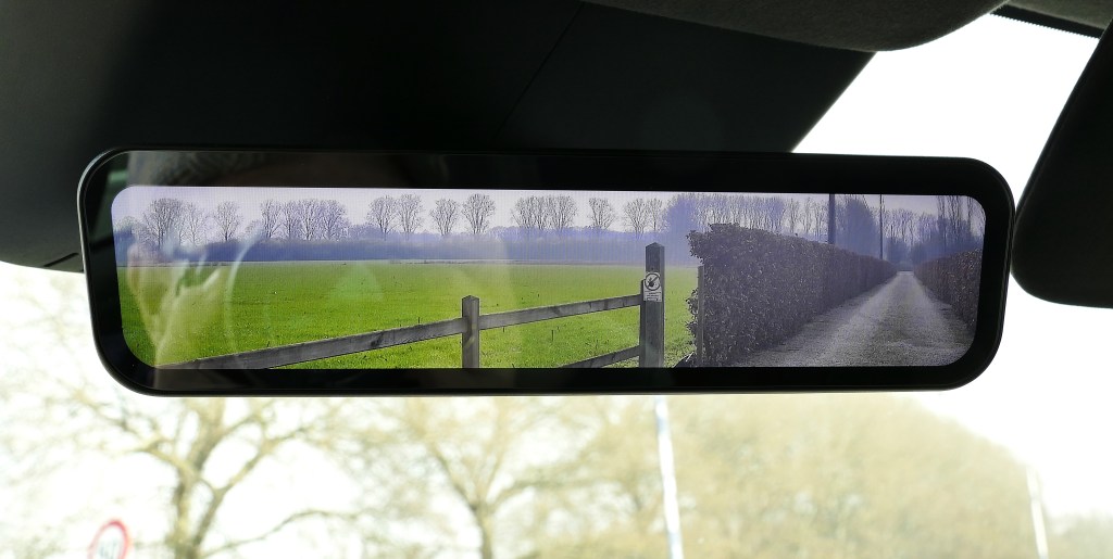 The led headlight bar now runs fully over the front of the car, at the rear there is now a small duck tail spoiler. The car has now also a digital quite panoramic rear-view mirror, which is especially useful at night or when reversing in dark-lit areas. It can change back and forth to a “classic” mirror at the push of a button on its upper rim.