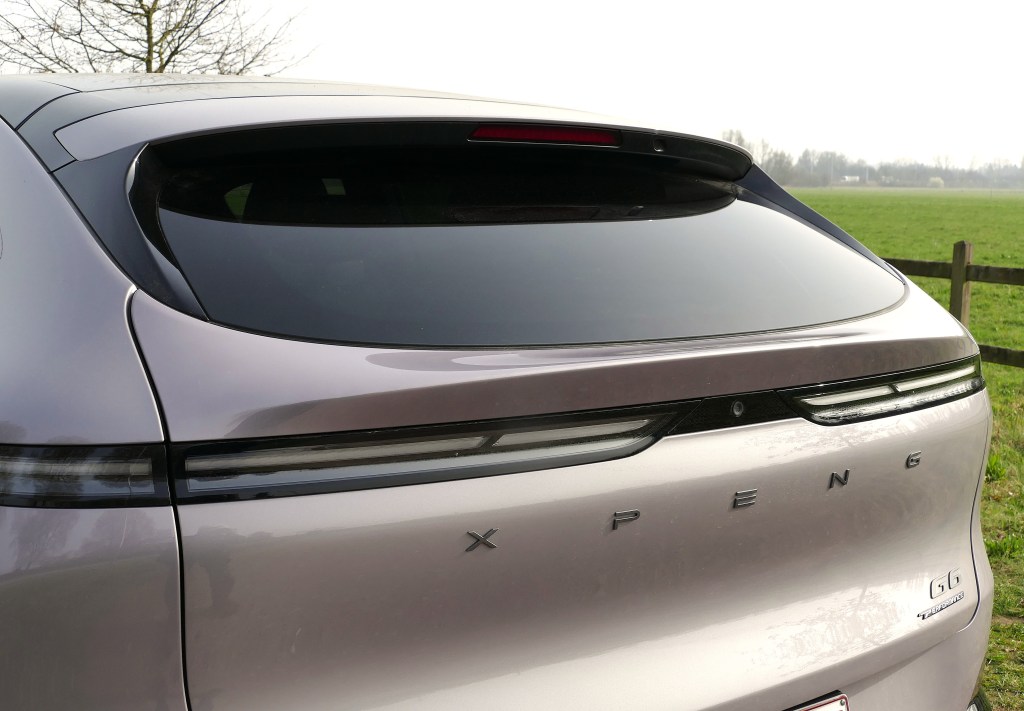The G6 is not small, to say the least. Compared with the Skoda Enyaq, it is still a good 10 cm longer. It virtually is as wide and long as its important competitor, the Tesla Model Y. The interior space is indeed quite generous, also and even more so for the rear passengers: they enjoy ample leg- and headroom, despite the curving roof line and the coupe-like silhouette. The car also stands quite tall, and the designers have camouflaged this judiciously by putting the sills in a darker color. One pleasant aspect is that you can… sleep in this G6, as the front seat backrest folds down horizontally and you can remove the headrest. You can also install yourself neatly in the backseat, use the fully folded front seat as a footrest and have your laptop snugly installed on your stretched legs, and work comfortably…