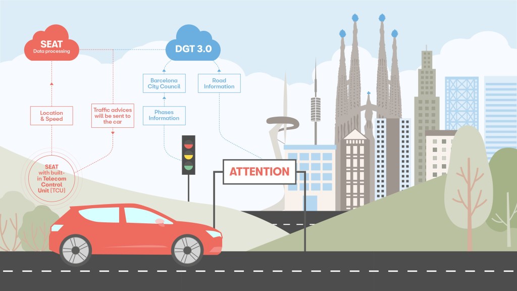 “In this project, SEAT’s new connected cars receive real-time traffic information from the Traffic Authority’s central cloud, including information displayed on motorway panels or the traffic light status in cities”, explains Jordi Caus, the Head of Urban Mobility Concepts at SEAT.