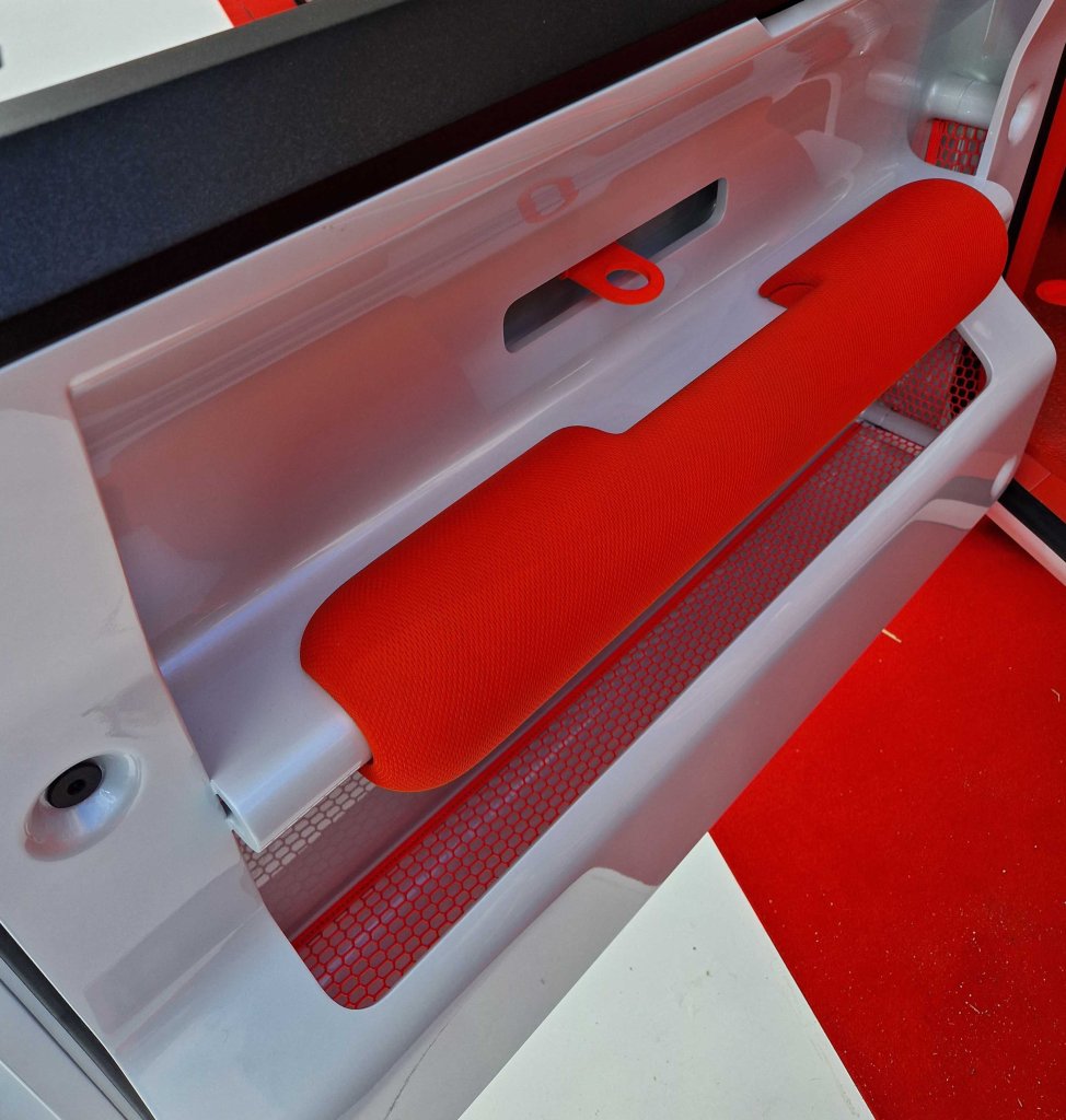 Reducing complexity and simplifying construction saves 20% in weight per door compared to a typical family hatchback. Half the number of components is required, and around 1.7kg per door is saved by the removal of the loudspeaker, soundproofing material and electrical wiring.