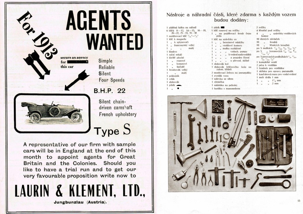 The Austrian sales center of Laurin & Klement was eagerly looking for dealerships in the UK and Commonwealth, for its Type S.