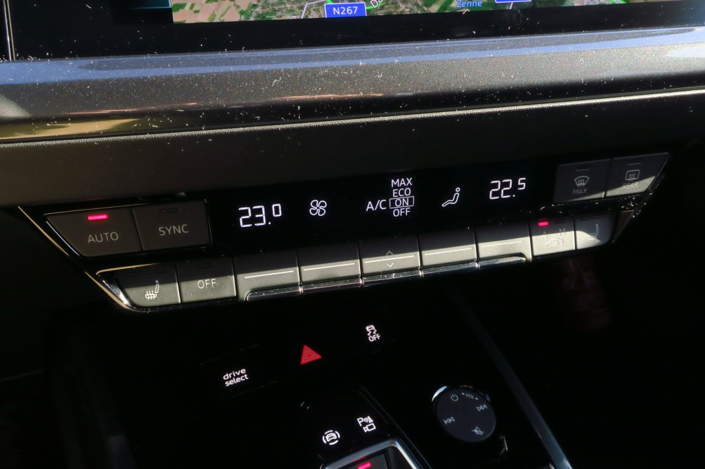 We also mention here the “coasting function”. When one hasn’t chosen the “B” mode, the Audi will just coast along when you lift the throttle, and this adds greatly to the “Zen” driving pleasure, once you have mastered the art of anticipative driving.