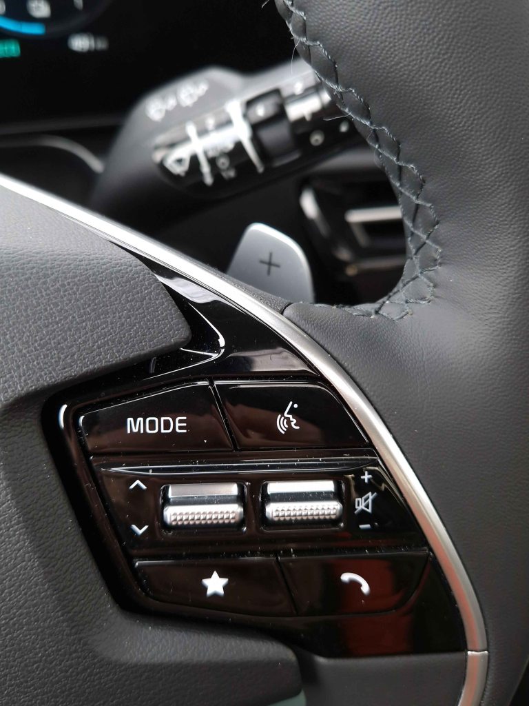 On both sides of the steering column one finds buttons like a Formula 1 driver would use. The right button puts you immediately in the sports mode. Performance galore, but your range will soon dwindle, even more so in winter. With the left button you can click through the available driving modes, from eco to sports.