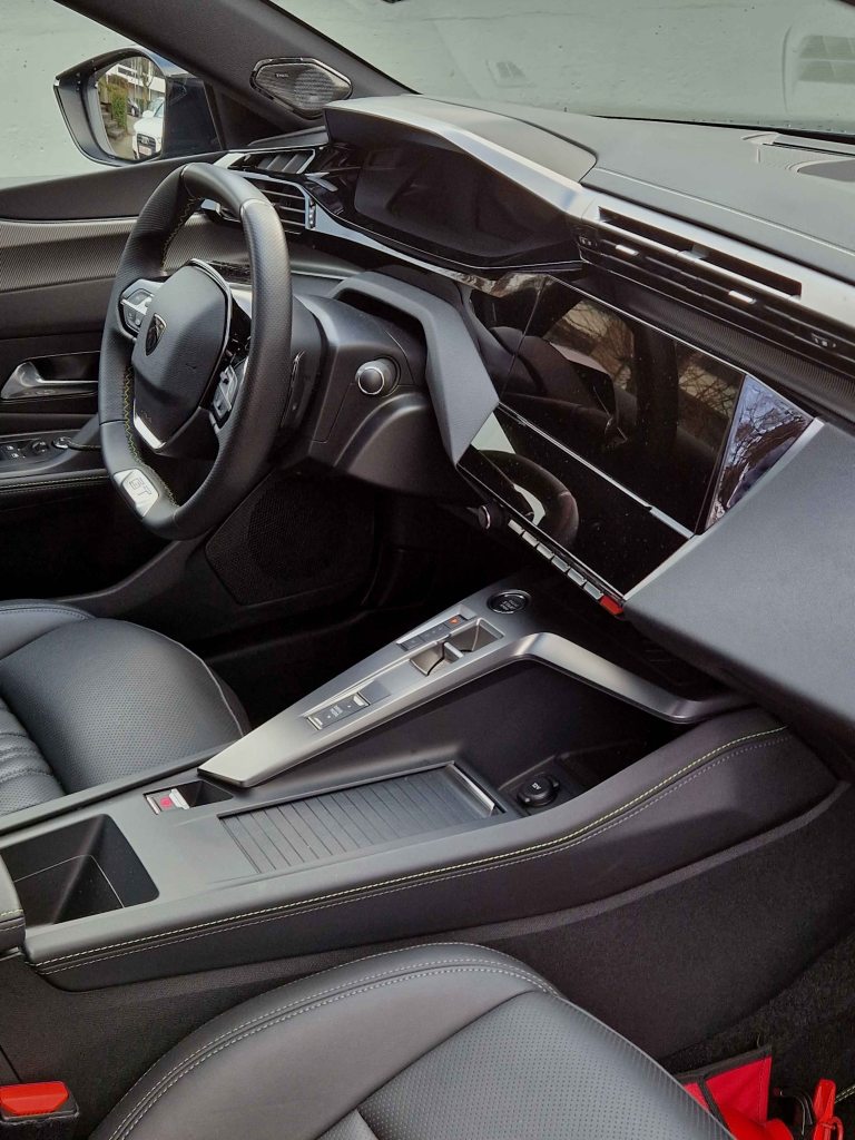 The DS 7 “E-Tense” we tested was the 225 HP version, which has a 180 HP 1,6 litre petrol engine driving the front wheels through an 8 speed automatic, as well as a 110 HP electric motor. A very smooth combination, with imperceptible transitions from combustion to E-power, offering the delightful feel of E-power in urban traffic, and a smooth power flow of the petrol engine on the open road.