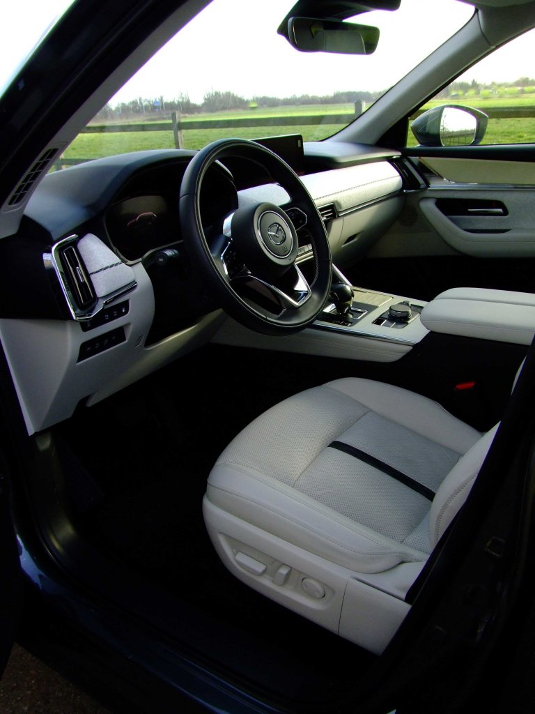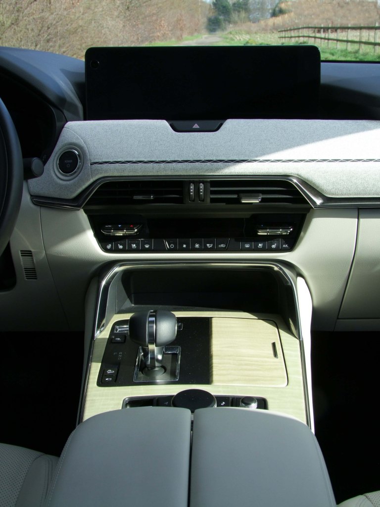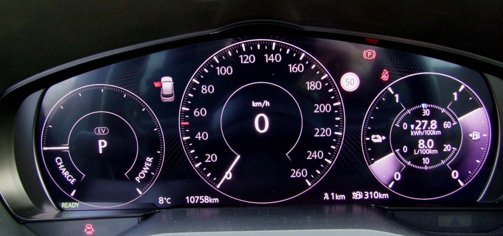 What impressed us also was the rich and spacious interior. Passengers in the rear will find any amount of seat and legroom on the massive back seat and also behind the wheel one enjoys the grace of space. The glass roof enhances further the airy impression in the cabin. The drive is also very smooth and silent, and in chosen “Smooth drive” mode, the coil sprung car proved very comfortable indeed. Infotainment is also top notch with a large upper touchscreen and a tablet type lower touchscreen, which is used for additional functions and can be retracted into the dashboard.