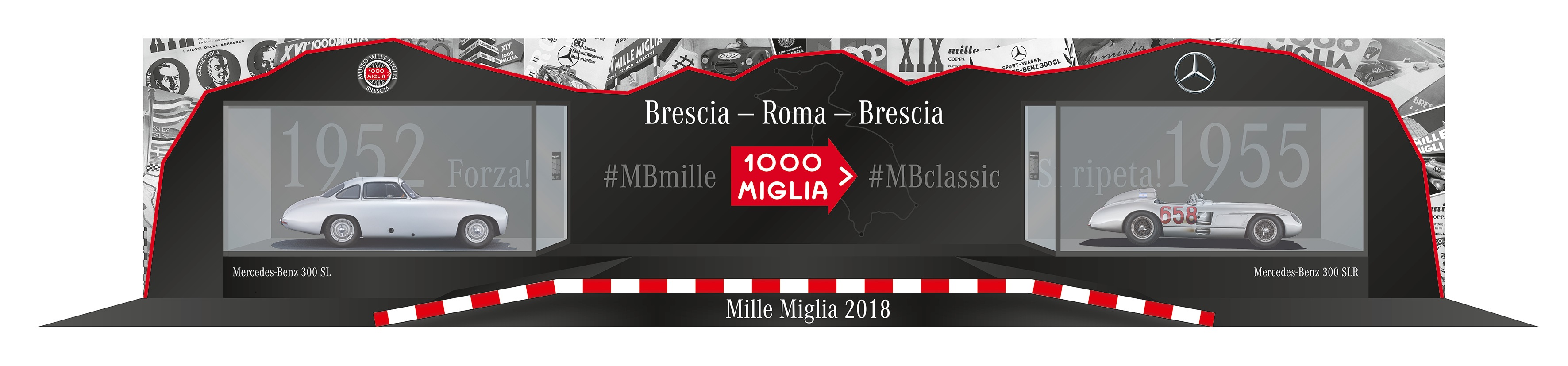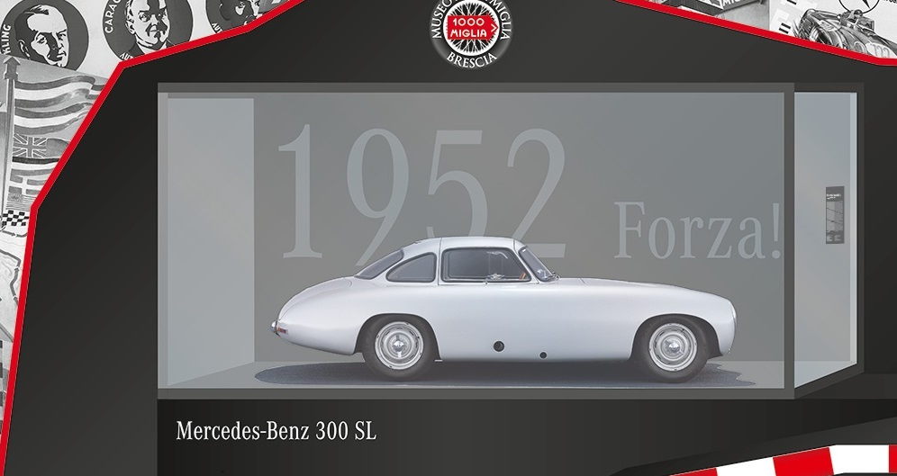 This year, Mercedes-Benz is putting on an extraordinary special exhibition in the courtyard of the museum: every visitor can drive his vehicle on a starting ramp as is typical for the Mille Miglia. He can position his vehicle for a photo between two famous Mercedes-Benz racing cars which caused a sensation at the Mille Miglia with their successes: the 300 SL racing sports car (W 194) from 1952 (2nd and 4th place) and the 300 SLR (W 196 S) from 1955 (1st and 2nd place).