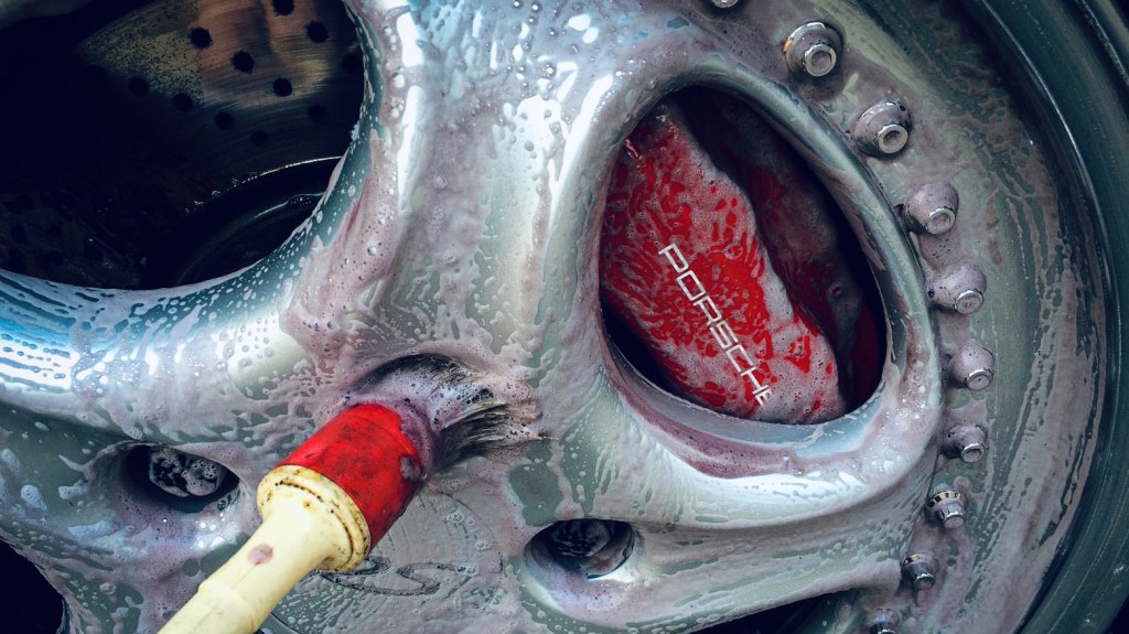 -Don’t forget the inside of the wheel to make a really thorough job of it. If you’re lucky enough to own a Carrera GT, you’ll find the caliper sits very near to the back of the wheel so it’s tricky to get a wheel brush in behind the alloy. Rotate the wheel by a quarter of a turn and then you’ll be able to clean that section as well.
