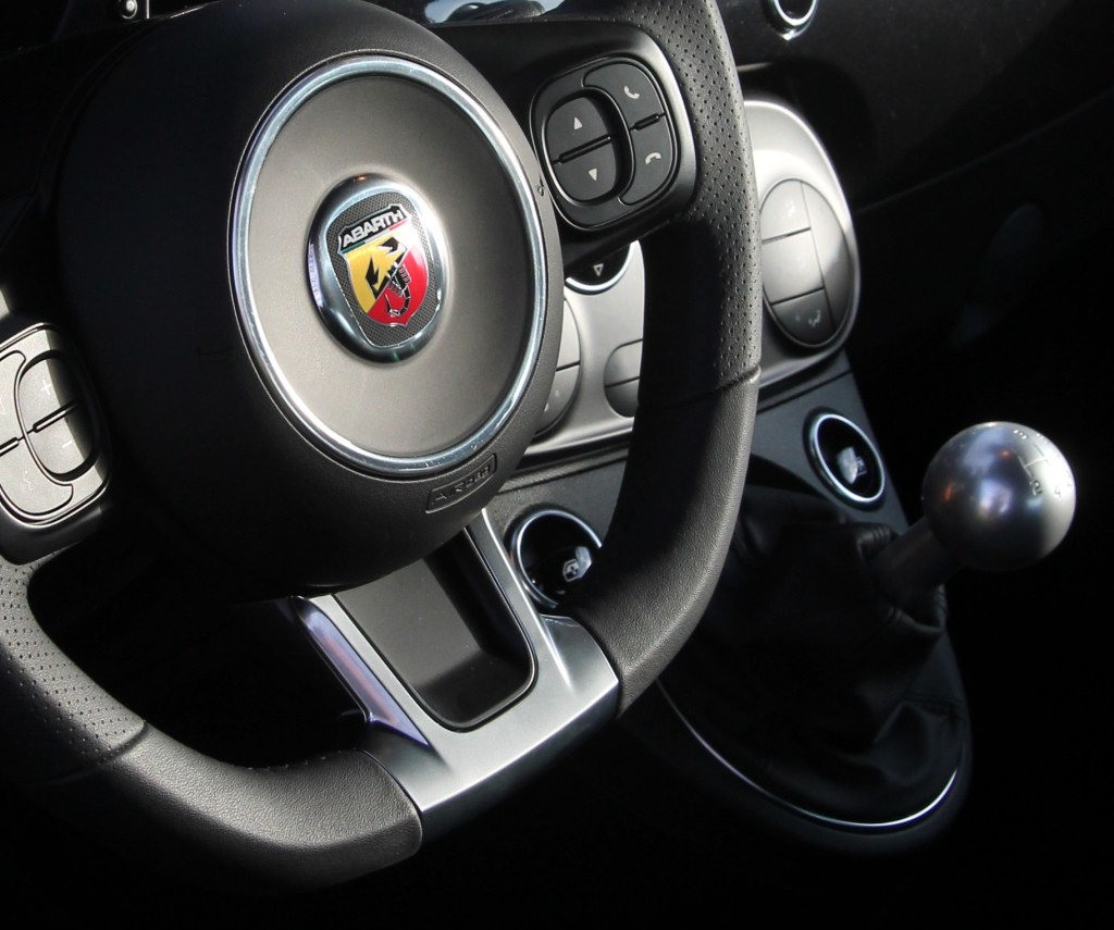 This is where all comparison ends. The actual Abarth 595 is still compact, but then again a lot sturdier with a kerb weight of slightly more than 1 tonne, much heavier than the nimble 700 kg of the A112. The engine is now the well proven double overhead cam 1368 cc unit, developing here 165 HP, and is very characteristic with its deep exhaust roar. It is very civilized in town, ready to pull away without hesitation from 900 rpm onwards, and this proved to be very pleasant in slow traffic. We tested this Scorpioneoro with the 5 speed manual transmission, and it delighted us with its very subtle and slick changes, combined with a very smooth and progressive clutch. With all this, the 595 behaves delightfully smooth and easy in tight urban traffic, and is of course an absolute dream on the open road.